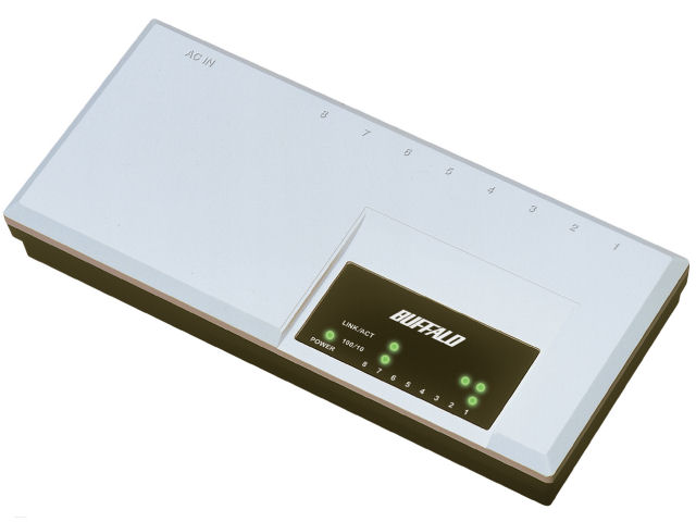 8ポートの10/100Mbpsスイッチングハブです。コンパクトで、電源も内蔵しておりACアダプターじゃないので扱い易いです。 全ポートでクロス/ストレート自動判別してくれます。昨年1000Mbpsへの切替にともない現役を引退することになりましたが、丸4年なんの問題もなく見事に存在感を消してくれてました。 背面のマグネットでスチール机の目立たない位置への設置も楽です。 優秀な製品です。 ポートが多いのはなにかと便利なので、予備品として保管します。