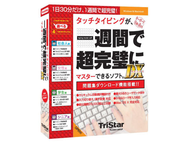 タッチタイピングが一週間で超完璧にマスターできるソフト。DXは現在価格情報の登録がありません。