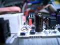 赤いコンデンサと干渉してる様子です。