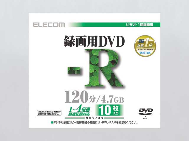 少なくとも私の使用しているHDDレコーダ(TOSHIBA RD-XS34)には最悪の相性でした。 中にはまともなディスクもあるかな?と思い、10枚中8枚まで録画してみましたが、7枚は完全にエラー。1枚はXS34での再生はできますが、他のPC内臓プレーヤやPS2では再生できませんでした。 細かいエラーの症状は、録画自体は正常に完了したとの知らせが出るのですが、いざ再生してみると、途中でエラーメッセージが出て停止してしまいます。再生中エラーが出る個所はディスクによってまちまちでした。 他のメーカーのDVD−Rより高めの価格で、私が過去に買った中では最高級でした。他のメーカのディスクとしてはRICOH、SONY、MITSUBISHI、TDK、FUJIFILM、SuperXのもの(4倍速/8倍速)を使用していますが、一回もエラーが発生したことがないだけに、このELECOMのディスクは非常に残念です。
