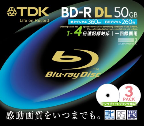 SONYの3枚組より安いですね。プリントエリアも広く、質感にも満足。 HDD感覚でどんどん記録できるので、一枚50GBのアドバンテージは大きいです。 早いとこ単価1000円切ってほしいです。それだけが願いです。