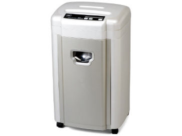 独身家庭での使用感です。 職場で業務用、パーソナル用の2タイプを使い分けて使用しており、 その使用経験を踏まえた上でのコメントです。 〔主な裁断物〕家庭生活におけるレシート、郵便物、A4コピー紙等(メディアは未使用) 【デザイン】…一般家電のような色とデザインです。 OA用品のように見えず部屋に溶け込み気に入ってます。 【裁断の細かさ】…クロスカットの4×40mmで標準的です。私には必要十分。 【裁断能力】…力強くスピードも早いので満点。 【サイズ】…大型の空気清浄機くらいの大きさでお世辞でもコンパクトとは言えません。 重量もかなりありますがキャスター付きでちょっとした移動はしやすいです。 【手入れのしやすさ】…ダストボックスはスライド式で取り出しがしやすいです。 29Lの容量があり掃除の頻度が少なくて済みます。 【静音性】…とても静か。仮に深夜の使用でも全く問題にはならないでしょう。満点。 〔総評〕 中型クラスの機種は他のサイトでもユーザーコメントが少なく機種選びはずいぶん悩みました。家庭用の小型のものを買ってから不満を持つより、性能に余裕のある機種をという思いで若干高い価格に目を瞑って購入しましたが、価格分の価値が感じられ正解でした。