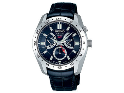 【デザイン】 文字盤のデザインはコントラスト・メリハリが効いてスポーティヴ。色味は単色だが同心円状の溝の模様がついている。ベゼルは鏡面仕上げで、傷はつきやすい。SAEN001と比べると、ベゼルがシルバーで小さく見えるが、厚さは実測値で13.9mmと厚い。サファイヤ・サンドイッチで無反射コーティングは外側にはない。GMT針は赤くて目立つが、特に時針は視認性が悪い。 【ブランド性】 雫石ブランド。8振動・七針の複雑ムーブメント4S36A。 【機能性】 日付針や曜日針の切り替わりには時間がかかる。時針は2時のリューズで独立して動かせて時差調整できる。 【レア度】 10年前の製品。 【装着】 メタルバンド(\18,000)に換装、重量は159gとギリギリ許容範囲。格子柄のベルトで、ゴチャゴチャした文字盤にマッチしている。 【耐久性】 傷はつきやすく、ムーブメント(機芯)も複雑で、あまり期待はしていない。 【フォーマル】 不向き 【カジュアル】 向いている 【総評】 コントラストの高い文字盤で好みは割れるかもしれないが、赤いGMT針やクッキリした白い活字はスポーティヴで若々しく、一目で気に入った。ちなみに耳を当てるとシャカシャカと8ビートの機械音が聞こえ、手巻きでもシャーシャーと音がするのだが、SAEN001ではそんなことはない。同じムーブメントなのに不思議だ。
