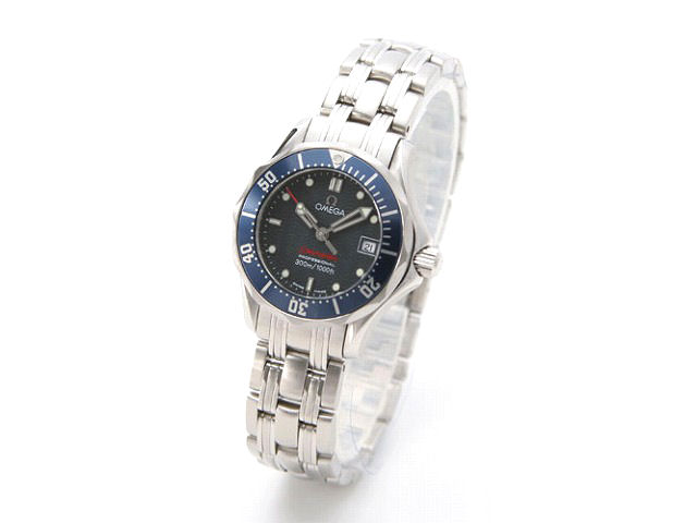 それまで使っていたロンジンのクオーツ時計に水を入れてしまい、スイス送り の診断が出たため修理を断念。他にスピマスを所有するも、やはり便利なクオ ーツで、水も気にしなくてよい時計が欲しいということで、本機を購入しました。 使用しているのはあくまでも嫁ですが、レビューは私が書かせて頂きます(笑) 【デザイン】 ケース径28mmはラージサイズのミニチュアみたいで可愛いですね。 小さくても裏ブタにはシーホースのレリーフが誇らしげに刻み込まれています。 ダイヤルはもちろんおなじみの波模様です。 ダイヤルのアプライトのΩマークは、個人的にはプリントのほうが好みでした。 プリント仕様の2583.80を探しましたが、モデルチェンジしてから日が経って いたのか流通在庫もゼロ。諦めて2224.80の購入となりました。 【ブランド性】 オメガの代表的なモデルのレディースですから、オメガらしさは感じられる と思います。 【機能性】 オーソドックスなデイト付き中三針ですので、機能的には突出したものは ありません。しいて言えば本格的な300m防水であるということでしょうか。 また、精度はクオーツですから言わずもがなです。 正確には測定していませんが、月差+5秒以内くらいみたいです。クオーツ としても優秀な部類かと。 回転ベゼルの回転ピッチもメンズと同じく0.5分ピッチで手抜きなし。 ブレスレットのクラスプはプロ300のラージなどと違い、スライド式のものに なります。旧シーマスター120mと同仕様です。 ラージとボーイズにあるヘリウムガスエスケープバルブも非搭載ですね。 飽和潜水はおそらく一生しないと思いますのでなくてもいいですね(笑) というかないほうが不意に緩んだりする心配もないので、逆に安心ですね。 【操作性】 メンズサイズのシーマスターと同じく、回転ベゼルは慣れないと回しにくい かもです。滑るからと力を入れて「掴む」ように回すと余計に滑って回りません。 ベゼルの上を「滑らすように」「軽く」そして「少し素早く」回すとチキチキと 小気味良い音を立てて回ります。 日付け変更はリューズ1段引きで、秒針を止めずに時針のみを動かして行います。 リューズをクルクル回すのは面倒とも感じるかもしれませんが、変更後に正午に 日付が変わったりするトラブルがないので、これはこれで好きです。 ちなみに時刻合わせや日付け送りは私の仕事です(笑) 【レア度】 普通に買えますし。お値段もお安いのでレア度云々をいう時計ではないですね。 【装着】 何ひとつ不満は聞こえてきません。 【耐久性】 もともとが耐久性の高いダイバーモデルですから、あまり気を使わず普段使いに 使用しています。もう一本の嫁所有機であるスピードマスターが、ミネラルだか アクリルだかのプラ風防で傷が付きやすいのですが、サファイヤガラスは傷が ぜんぜん付かないと喜んでいます。 【フォーマル】 向いてる。とは言えませんが、余程かしこまった席でなければ、その人次第かと。 ブルーといってもけっこう渋めのブルーですから、ビジネスでの使用も問題ない のでは?と思います。 【カジュアル】 バッチリですね。 【総評】 コストパフォーマンスの高いモデルだと思います。うちではビックの通販で 14万円くらいで購入しました。 安心して使える300m防水、小さくても凝縮感があり仕上げもそれなりに良く、 高級感を感じます。高級感といってもカルティエなどのような宝飾チックな 高級感ではなく「ハイクオリティな道具」とでも言いましょうか。 少々傷がついてもこの時計には逆にそれが似合いますね。 精度もよく一度時刻合わせをすれば、日付け送り以外は半年くらいはほったら かしでOKです。機械式に比べれば、どうしてもクオーツは味気ないものですが、 こういった手間のかからない点は女性には嬉しいのではないかと思います。 レディースとはいえシーマスターはやはりいいですね。 ロレックスと並び誰もが知るブランドで、実用性が高くデザインも秀逸。 おまけに価格は良心的で、最高の実用時計だと思います。 私もラージサイズが欲しくなってきました(笑)