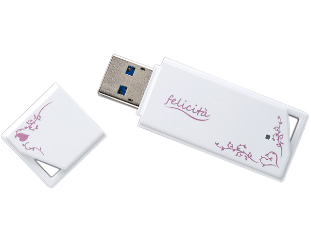 【デザイン】 ほんのちょっとだけ、女性ウケを狙った柄模様が入っていますが、形状はシンプルそのもの。 ちなみに、キャップを本体にハメたりなど、キャップの紛失対策がありません。 いまどき珍しい。ちなみにアクセスランプは青です。 【書込速度】 USB2.0ポートに挿して50MBほどのMP4ファイルを書いてみましたが、 4,5秒で書き込みが終わりました。早い、と思います。 【読込速度】 これも早い。HDDと変わらない感覚。 【携帯性】 小さいですね。薄い。 【機能性】 セキュリティなどオマケ機能は一切ありません。 【総評】 少し柄模様は入っていますが、USB3.0/2.0両対応のスタンダードなUSBメモリです。