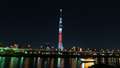 緑にライトアップされたスカイツリーです。 |
