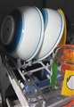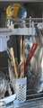 こみきさん 上部のコップ置場は洗残しができる。長物置き場の菜箸は、上カゴに干渉する |