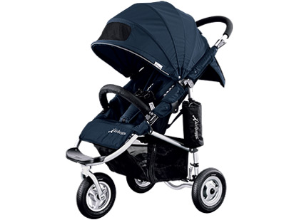 - 重量8kgの「エアバギー」最軽量モデルにマイナーチェンジを施し、ブラックフレームを採用した背面式で1人用の3輪ベビーカー。