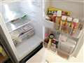 - 2Lのペッドボトルを3本置いてもまだ余裕の大容量ドアポケットを備えた冷蔵庫(150L)。ガラス製の棚を採用し、サッと拭き取れるので清潔。