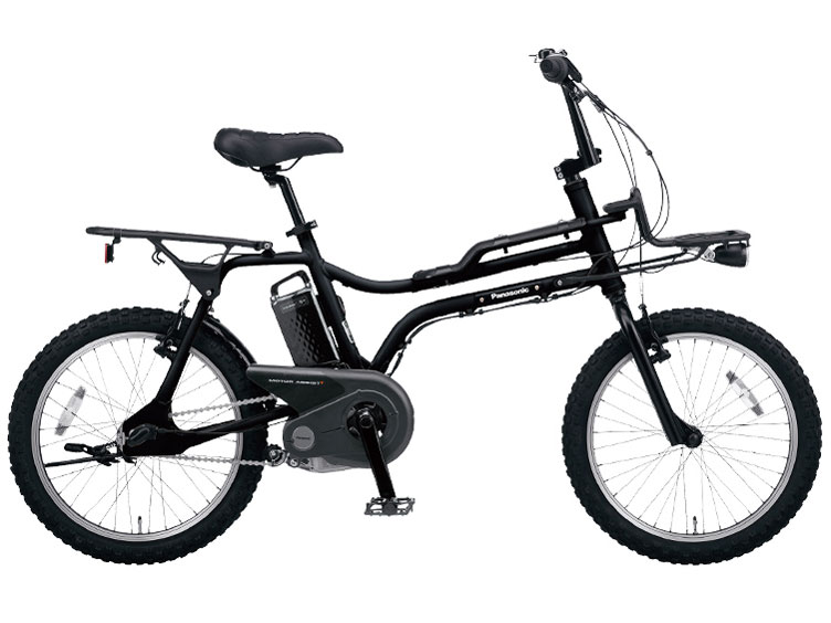 - モトクロスタイプの20型アルミフレームを採用したBMXスタイルの電動自転車。フロントキャリヤ・リヤキャリヤ・フレームキャリヤを標準装備。