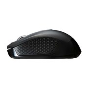 丸いフォルムが手になじみ、長時間操作しても疲れにくい形を採用したワイヤレスブルーLEDマウス。左右対称形で、右手でも左手でも使用することが可能だ。