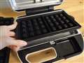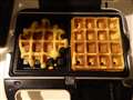 1度に2枚のワッフルが焼ける。生地の流し込み方で形が変えられる