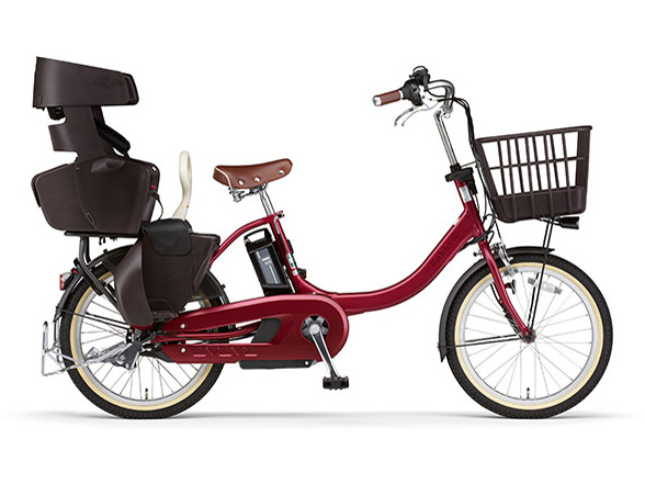 - 頭部を270度包み込むリヤチャイルドシートを搭載した電動アシスト自転車(幼児2人同乗基準に適合)。高さ調整できるヘッドレストは顔の側面までガード。