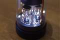 神野恵美さん 下部にもステージライトを模した小さなLEDを装備。主役の柱状のユニットを照らし出す |