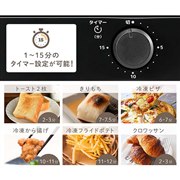 - ダイヤルを回すだけの簡単操作で、1〜15分のタイマー設定が可能。スライド式のパンくず受け皿を引き出すだけで簡単に手入れできる。