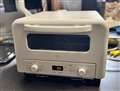 - 石窯の構造を取り入れた、トースト4枚焼きタイプのオーブントースター。小さなガラス窓、アーチ状の開口部、角を丸めた庫内構造を採用。