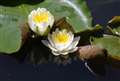 白い睡蓮、水面には影も映る。