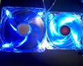 部屋の電気を消した状態の【Blue LED Silent Fan R4-L4S-10AB-GP】です。 |