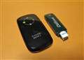 データ通信サービスの利用料金を事前にチャージして使用するUSB型データ通信端末(チャージ5000円分付属)。価格は14,800円(税込)