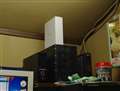 画像中央の黒色が4連装のeSATA接続のハードディスクケースです。 |