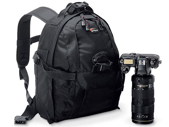 私はロープロのデザインが好きで、ザックタイプのバックを選ぶときも迷わずロープロから選択しました。 大き過ぎず適度な大きさは持ち運びに都合が良く、キヤノン1D系ボディに望遠ズームレンズ70-200F2.8などを装着したまま、さらにスピードライト、レンズ2本、その他が収納できるので、目的が決まっている撮影なら十分な収納力です。 言うまでもなくしっかりした造りで、レインコートが装備されているのも嬉しいです。 とっても使い勝手の良いバックです。