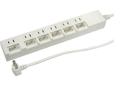 YAZAWA『個別スイッチ付節電タップ(H-662WH)』のレビュー。 2011年3月、ホームセンターの特売で498円で購入(通常は698円)。 MADE IN CHINA。 個別スイッチが付いた、6個口の節電タップだ。 省エネが叫ばれている中、機器別の電源をこまめにON・OFFできるタップは便利だ。 俺にとってはそれ以上に、各家電製品からコンセントに向ってぐじゃぐじゃ伸びている電源コードをすっきりさせたいという目的もあり購入した。 テレビ周りは、テレビをはじめ複数のレコーダー、複数のゲーム機、iPod充電機能付ラジオ、シェーバーの充電器などを置いているため、どの電源コードがどの機器のものかが把握しにくい。 またパソコン周りも、PC、外付けHDD、プリンター、スピーカー、デスクライト、携帯の充電器などがあり同様だ。 これらを明確にするために、こういった多口タップは有効である。 ただしコイツには、差し込み口に貼るシールは付いていないので、別途購入するなりして機器名を記入・貼り付ける必要がある。 また、端っこの1穴だけ、通常のプラグよりも大きな面積をとるACアダプター用に、少し広めのスペースが設けられていることも購入の決め手だった。 「雷サージ対応」であれば文句なかったが、このお値段ではメーカーも難しいか。。。 コイツの合計使用量上限は、1500Wである。 2年以上使っているが、テレビとレコーダーは常にタップのスイッチを入れっぱなしだ。 その2カ所のスイッチについては、さすがにオレンジのランプがチカチカし始めている(その意味で耐久性を「3」とした)。 なおその後、さらに安い「398円」で売り出されていたので追加購入した。 購入価格も含めた総合評価(満足度)は、「4」とする。