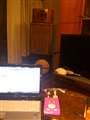 猫が爪研ぎするので、スーパーウーハーには笊でガード
