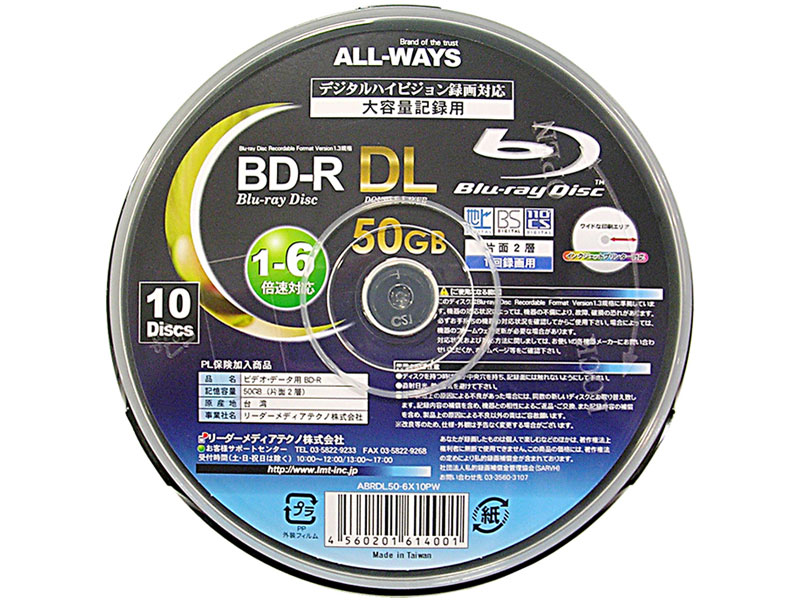 ABRDL50-6X10PW [BD-R DL 6倍速 10枚組]