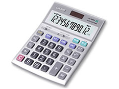 【総評】 10桁電卓。標準的スタイルです。 所見の印象は、なんで液晶の周りが白なの。 これは非常に見にくいんですけど。 カラーリングの失敗だと思いますよ。 黒なりの濃い色の方が液晶は見やすいです。 液晶部の境目が分かりにくいんです。 それとソーラーが真っ正面にでんと居座るのがいやです。 できれば液晶の下にあったほうがいい。 フォントは見やすくていいんだけど。 キーはピッチ、ストロークとも文句なしにいいです。 微妙に0キーを大きくしてあります。 打ちやすくて使いやすいですよ。 ボディ下部に丸みを持たせてあるけど、 まっすぐな方がいいと思う。 ●電源:CR2032+ソーラー