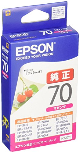 【発色性】 高額な純製品なので、互換品よりいいと思わないとやってられません。 【耐光性】 高額な純製品なので、互換品よりいいと思わないとやってられません。 【定着性】 高額な純製品なので、互換品よりいいと思わないとやってられません。 【印刷コスト】 計算したわけではありませんが、安くはないですよね。 【入手のしやすさ】 70Lとくらべて70は店頭で見た記憶がありません。 【総評】 リサイクルショップのジャンク箱にたまに箱なしの未使用品が入っているので、そういうのを買ってきますが、 70Lと同じ値段で売ってるので、割安感は少ないですね。 当初70と70Lの2種類があるのを知らずに買ってました。 ちなみにビニールのパッケージが付いた状態で70は22g、70Lは25gです。 ビニールがない使用済品は17gになります。ビニールが1gとすると、中のインクは70で4g、70Lで7gということになります。 実売価格を考えると70より70Lの方がすごくお買い得というわけでもなさそうです。