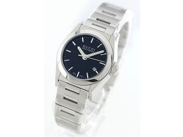本日1月1日に新宿のGMTさんで購入しました。 税込み53800円とリーズナブルでした。 使用用途は弔事用なので、高すぎず、シンプルな物を 探してたどり着きました。 【デザイン】 シンプルで嫌みがないと思います。 外見は思ったよりもずっしりしていて、しっかりした 作りです。 針の夜光もきちんと光ります。 【ブランド性】 特段グッチっぽいということもないですね。 【機能性】 特に機能も無いので普通です。 【操作性】 リューズをいじるくらいしかないので普通です。 【レア度】 定価の1/3で売っているのでレアではないと思います。 【装着】 ブレスのコマの抜き差しでしか調整できないので、嫁は1コマ外すと キツキツ、外さないとゆるゆるでしたが、これからの季節を考えゆるめで 調整しました。 【耐久性】 買ったばかりなので無評価です。 まあ、中身はしょぼいクオーツなので、逆に壊れにくいかなと 思っています。 【フォーマル】 葬式が目的で購入したのでバッチリです。 お祝い事に関しては嫁の年齢ではちょっと微妙ですので、 ロレックスを着用するそうです。 【カジュアル】 元々安い時計なのでカジュアルに最適だと思います。 黒い文字盤でプレーンなデザインなので服装は選ばないと思います。 【総評】 弔事用の時計を探しており、海外ブランドの物で安い物が欲しかったので 購入しました。 外見は値段の割にしっかりした作りで感心しました。 お手頃価格なのでちょっとしたプレゼントや普段使い用にも最適だと思います。 我が家でも嫁が普段使いにも使えるといって喜んでいました。