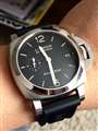 パネライブティックにて、1950 44mmと42mmの白文字盤と比較して購入。当初オフ時での使用前提で購入しましたが、42mmの程良いケース径、文字盤に3、9が無く比較的シンプルであること、日付表示があることから、仕事...続きを読む
