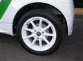 外川 信太郎さん 155/60R15タイヤにホワイトペイントのアルミホイールを装備。 |