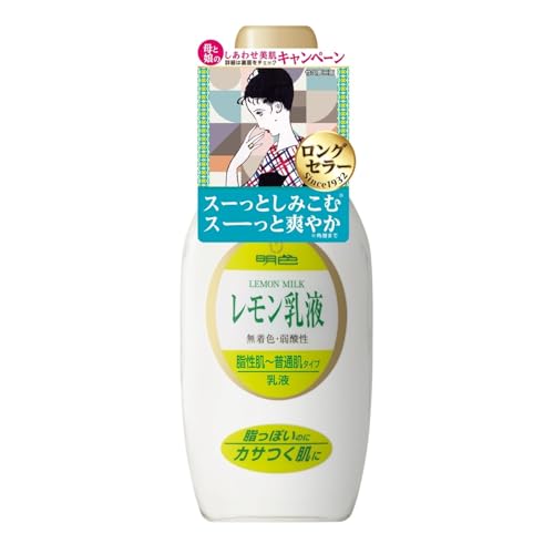 【皮膚にうるおいを与える】 ベッタリと肌に密着する感じです。 【肌のキメを整える】 使用後はしっとりするので、整っているのかなぁという感じです。 【皮膚の水分、油分を補い保つ】 油分は補われていると思います。 【皮膚の乾燥を防ぐ】 乾燥は防がれていると思いました。 【肌を滑らかにする】 よく分かりませんでした。 【肌にはりを与える】 これもあまりよく分かりませんでした。 【肌にツヤを与える】 ツヤツヤ、テカテカにしてくれます。 【総評】 このレモン乳液は脂性肌〜普通肌用の乳液で、脂っぽいのにカサつく肌に良いようです。 同社の製品ソフト乳液(乾性肌用)も試してみましたが、あまり違いが分かりませんでした。 こちらのレモン乳液もかなりベッタリとします。 つけすぎたり、ベタツキが気になるときはティッシュで軽く抑えて使用していました。 するとベッタリがしっとりに変わっていい感じになります。 レモン乳液と言うので、レモンの香りでもするのかなぁと思っていましたが、香りはベビーパウダーやおしろいのような匂いでした。 昔のお母さんとかお婆ちゃんの匂いというイメージです。 容器は瓶に入っており、同社製品のソフト乳液と同じく瓶の口の部分に○の穴の開いたプラスチックがついていますが、用心しないとたっぷり出てきてしまいます。 プッシュ式や柔らかいプラスチックで押すと出てくるような別の容器に移し変えると良いかもしれません。