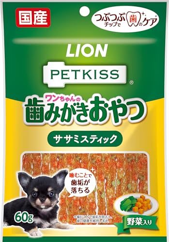 - ペットキッス つぶつぶチップで歯のケア ちぎれるササミスティック 野菜入り 60gのレビューをすべて見る