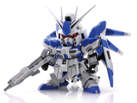 昔から、イラストなどでたびたび目にしていたものの、出典が小説ということでなかなか立体化の望めなかった hiνガンダムのまさかのSDモデルでのキット化です! 価格は定価1200円と、昔のBB戦士の標準価格が500円だった頃とかと比べると、やや高めですが、それだけ払ってでも手に入れるだけの値打ちは充分すぎて余りある。と言っても過言じゃないほど近年発売されたキットの中では 高品質でハイクオリティなキットでしょう。 まず、色分けに関しては,普通に組んだ後、ミゾの部分にスミ入れだけしてやれば十分と言っていいくらいにカンペキに近いです。 そして武器パーツ類もビーム・ライフル、ビーム・サーベル、ニューハイパーバズーカ、シールドと充実しており、 フィンファンネルは、なんと設定通りにちゃんと変形し、エフェクトパーツを取り付けることで発射状態も再現できます。 残念ながら6つのフィンファンネル全部は変形せず、変形可能なのは2つだけですが、それでもこれだけのギミックを搭載した SDモデルは貴重かと思います。 ちなみに、カメラアイは瞳有りバージョンと瞳無しバージョンの両方をパーツをつけかえることで選べます。 プロポーション自体もhiνガンダムの格好良さが非常に上手く再現され、手に取った多くの人が十分に満足できそうな出来だと思いますね。 せっかくhiνがキット化されたので、やっぱりライバルモビルスーツのナイチンゲールのBB戦士でのキット化もいつかは期待したいところです。