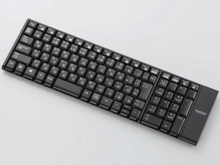 とても手軽な値段のワイヤレスキーボード。1000円台前半で購入できるので、どんな使い勝手だろうと購入してみた。 【デザイン】 フルサイズのキーボードとして、オーソドックスながら、縦方向にはキーを配置した面積以上にははみ出さない、スリムなデザイン。電池の収納場所だけが右端に少し出っ張っている。最低限の設置面積にしているところが好感が持てる。 【キーピッチ】 フルサイズのキーボード。キーピッチは標準的なもので、十分である。 【ストローク】 ストロークはしっかりと確保されている方だと思う。キータッチは、値段なりのものではあるが、一応、これなら長文の入力にも耐えうるレベルと思う。 ただ、深さは十分でも、打鍵に対する反発は、値段のせいもあるが、高級キーボードほどの打ちやすさはないといっていいかもしれない。 【キー配列】 テンキー付き、かつ、キー配列は標準的なもので、大きな問題はない。 ただし、Backspaceキーがかなり小さく、これだけは気になるところだ。Enterキーももう少しスペースがある方が望ましいと思う。 カーソルキーの上下方向キーもかなり小さいが、これはテンキーのNumLockをはずして十字カーソルキーとして使うことで、我慢できるかもしれない。 【機能性】 テンキー付きであるし、Fnキーもしっかり揃っているので、フルキーボードとしての機能に遜色はない。 ワイヤレスキーボードとして、パソコンとの接続のために、USBコネクタに挿す小さな無線アダプタが付属している。 この無線アダプタは小さいので、なくしてしまいそうな欠点はあるが、逆にパソコンに挿しっぱなしでも物理的に邪魔になりにくい利点がある。ポータブルキーボードではないせいか、このアダプタを収納する場所はないのが少し残念。 キーボードをパソコンに接続するには、この無線アダプタをUSBコネクタに挿入するだけでしっかり認識され、自動でドライバーがインストールされ使えるようになる。キーボード本体には電源スイッチもなく、大変シンプルな仕様だ。 キーボード本体底面には、折りたたみの足がついているので、キーボードの角度を好みに応じて変えることが可能だ。 【耐久性】 耐久性は長く使ってみないとわからないが、特に問題になりそうなところはない。 【総評】 1000円台前半と、大変買い求め安い価格でこれだけしっかりしたワイヤレスキーボードが手に入るというのはちょっと驚きだ。確かにキータッチはお世辞にも良くはないが、最低限満足できるレベルとなっている。コストパフォーマンス重視の場合には、選択肢に入れて良いだろうと思う。