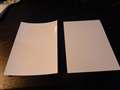 Rarupapaさん 左マクセルは印刷面を上にしてU字型に湾曲、右エプソンは横置きでへの字型に湾曲 |