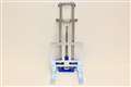 関口 寿さん 輸送中に開かないよう折りたたんだ脚部はロックがかかるが、ワンプッシュで解除できる |