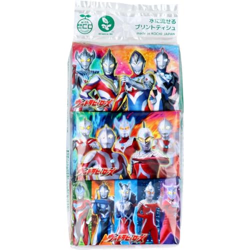 ウルトラマン好きな息子。このティッシュに変えてからは毎日しっかり持っていくようになりました。 トイレにも流せるので、急な腹痛時に公衆トイレでも使えるのは便利です。 ただ、使っているのが子供なので洋服のポケットなんかに入れたまま洗濯に出されることがしばしばあり 一緒に洗濯してしまうと大惨事になりますので、洗濯前に確認は怠れません。 が、これだけ子供が愛用するティッシュは初めてなので使い続けようと思います。