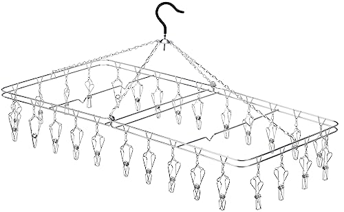 ホームセンターとかでステンレス製の同様の製品はよくあるのですが、洗濯ばさみの挟む力が弱くて思いバスタオルとかマットだと下に落ちてしまうことがあります。 でもこの商品はピンチのクリップパワーが強くて、そういう事は起きません。 買って正解でした。