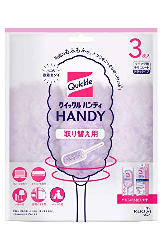 台所などの湿気や油が絡まったホコリは取りずらいけど、パソコンデスクまわりの乾いたホコリは良く取れて便利です。 安い他社製品も試したけど、ホコリの取れ具合や長持ち度合いはやっぱりクイックルワイパーのほうが上でした。 ホコリ掃除をした後に、お風呂場や屋外で叩けば何度でも使えるのが良いです。 結構長持ちします。 モニターやテレビ、表面がツルツル光沢のプラスチック家電製品に使っても、大きな傷がつかないのが良いです。 (砂ぼこりを掃除した後にツルツルプラスチックを掃除すれば傷付きます。ご注意を) お気に入り商品。