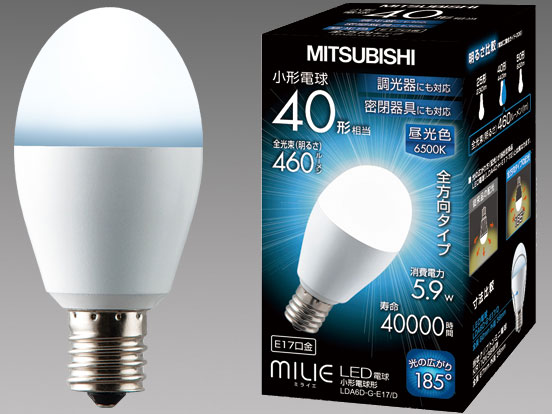 【デザイン】 つるんとした卵型。 見たまんまで発光するのは卵の下半分となるが、下向きに限って言えば照射範囲は広く、とても明るい。 【光色】 冷たい印象を受ける透明感の強い光。 お手本のようなLEDの昼光色。 【明るさ】 明るい。直で見るのはかなり辛い。 【総評】 三菱のLDA6DGE17が故障したので、型番が似ていることもあって代用として用いたところ、問題なくすげ替えることが出来た。 形状の差異は問題にならなかった。