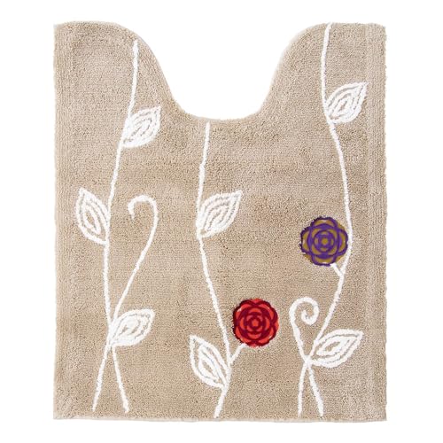 【デザイン】 おとなしいベージュ色に花模様でした。 【肌触り】 ふんわりしているように思います。 【使いやすさ】 ひくだけで簡単に使用できました。 【総評】 落ち着いた色合いのベージュにシンプルな花模様がついています。 トイレにひいたら特にずれることもなく、ストレスなく使えました。 マットもふんわりとしているように感じました。 冬場は足元の冷えから多少、防いでくれているように思いました。 欲を言えばもっと長いロングタイプがほしいと思いました。 追記です。 ほつれが出ること無く使い続けることが出来ました。 良かったです。 サイズ・・・約幅63*奥行き75cm(手前57cm) 【原材料】 アクリル90%、綿10%