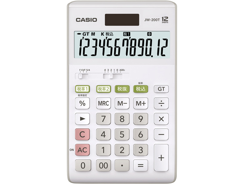 タイプ 実務電卓 税金や日数、時間など、簿記や会計に役立つ機能を持った電卓のことです。 関数電卓 三角・指数・対数関数や円周率、立方根など、主に工学・科学・数学分野に関わる計算機能を持った電卓のことです。 カード型電卓 小さくて軽く薄いので、持ち歩いて使用しやすいタイプです。 手帳型電卓 手帳サイズの電卓のこと。本体が折りたためるものや、キーを保護したり、カードなどを収納できたりするカバーが付属しているものもあります。 テンキー電卓 テンキーのないパソコンにUSBやワイヤレスで接続できる電卓のこと。数字入力の操作が快適になります。 プリンター電卓 印字機能を持った電卓のこと。原価・売価・利益などの計算をした後、その計算過程や結果をセットしたロール紙などに印字できます。マイナスの数字を赤色で印字できる製品もあります。 金融電卓 住宅ローンや繰り上げ返済、金利、外貨預金レートなどの資産管理・運用のシミュレーションが行える電卓のこと。大きな金額を万円単位で表示できるものや、複数人で共有できるように、大きな画面を備えているのが特長です。 |