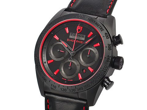 まだチュードルと呼ばれた頃に店舗で見つけたモデル 何気ないブラックのクロノグラフで良いなと思って見たんですが気がつくと見慣れない名前が ファーストライダー?ファストライダーとありました クロノグラフには基本興味が無かったんですが店員さんと話をすると並行品で少ないモデルだと言う話 後で知ったんですがドカティとのコラボと聞き色々調べるきっかけになったモデルです 実用で言えば軽いレザーベルトはベストだと思います メタルモデルだと200g超えますので中々ヘビーですが ブラックで統一された迫力のケース赤で縁取られ赤いインデックスが独特な色気を持ちます ベルトの赤のパイピングも魅力の一つですね ブラックケースにはブラックの金属ブレスレットが無いと聞き諦めたのを覚えています 中々見ないモデルですので欲しい方は手に入れて下さい