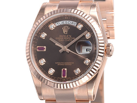 デイデイト 118235FA [8Pダイヤ/2Pルビー オイスターブレスレット チョコレート]
