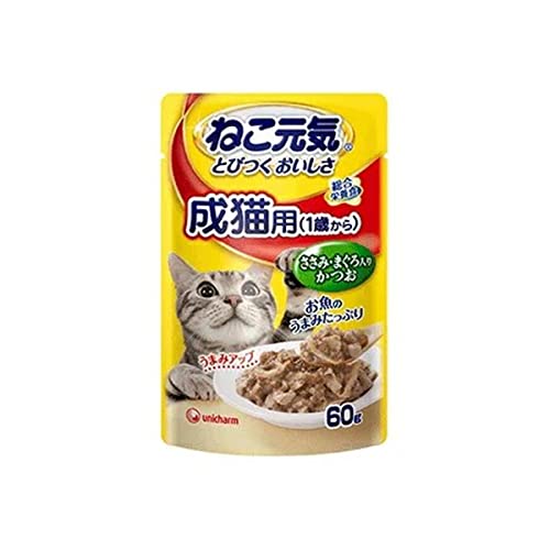 ねこ元気 総合栄養食 パウチ 成猫用(1歳から) ささみ・まぐろ入りかつお 60g