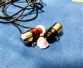 | DUOZAのベント(下部の丸い穴) | 色が左右異なる綺麗なイヤホンです。ケーブル細く不安あり。 |