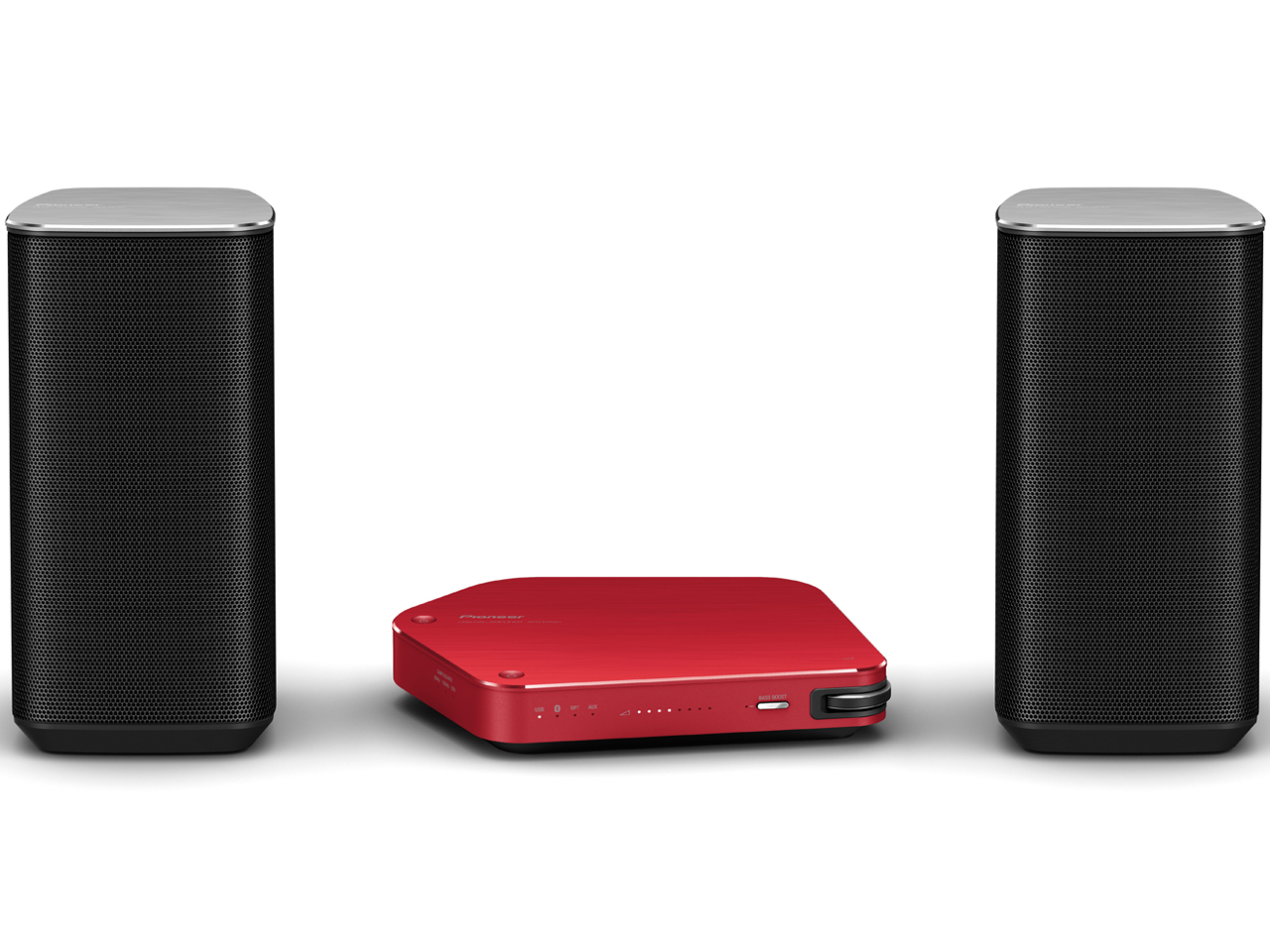 - ハイレゾ音源に対応したUSB DAC アンプとスピーカーのセット。筐体(きょうたい)には制振性にすぐれた厚さ2.8mmのアルミ素材を採用している。